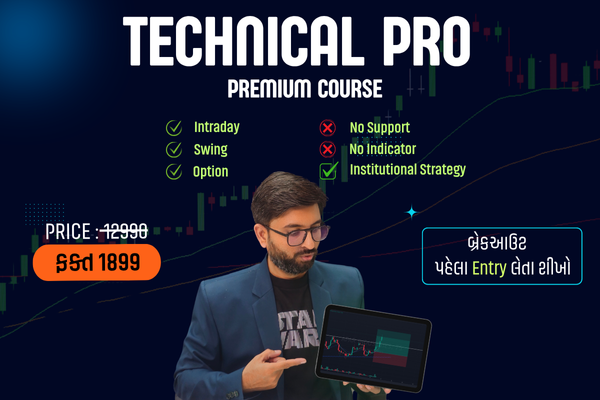 રિટેલ ટ્રેડર ની કેટેગરી માંથી નીકળી પ્રોફેશનલ ટ્રેડર બનવા માંગો છો ?તો અત્યારે જ Course ને Buy કરી ઇન્ડિયા ના ૫% ટ્રેડર જેવી રીતે ટ્રેડિંગ કરે છે તેવી રીતે ટ્રેડિંગ કરતા શીખો.